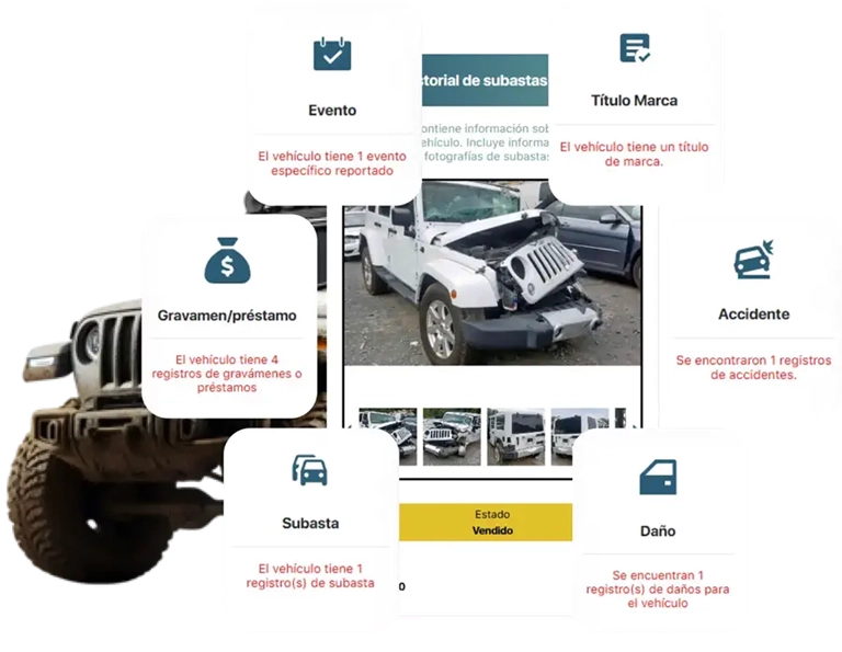 Nuestros reportes son muy precisos y detallados. Obtenemos datos de fuentes oficiales y de confianza para brindarle información precisa sobre cualquier vehículo. Cubrimos más de 60 puntos de datos.